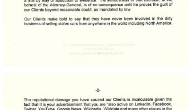 “We have the full instructions of our Clients to demand an unconditional retraction of the defamatory material you gratuitously fed the whole world and render an unqualified apology to our Clients.