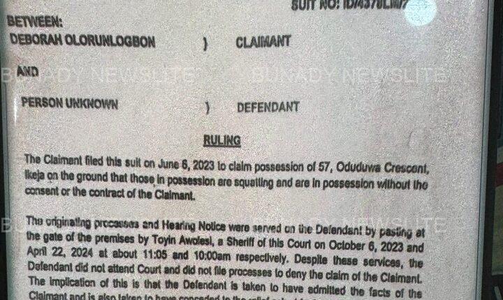 Court documents and a Certificate of Occupancy identify one Mrs. Deborah Oluwalogbon as the rightful owner of the property in Ikeja, Lagos, which Labour Party presidential candidate in the 2023 elections, Peter Obi, claimed belongs to his younger brother……READ ORIGINAL & FULL CONTENT HERE
