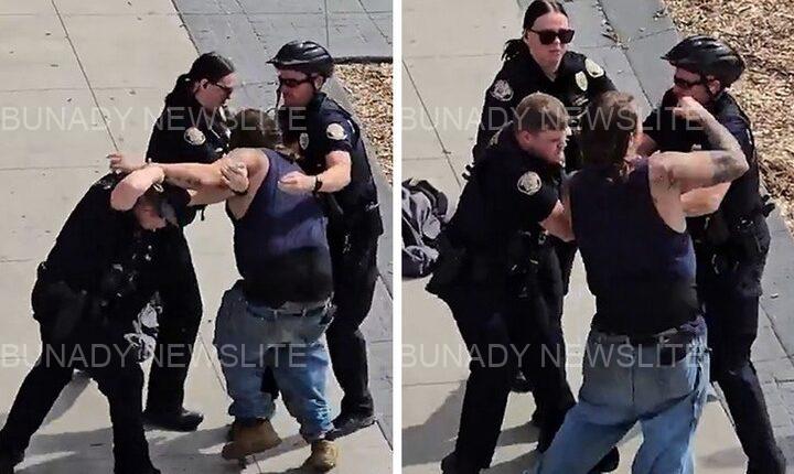 A man is in custody following a v!olent altercation with three police officers in downtown Fargo, North Dakota, on Saturday, June 9, a confrontation that was caught on video and has since gone viral online.