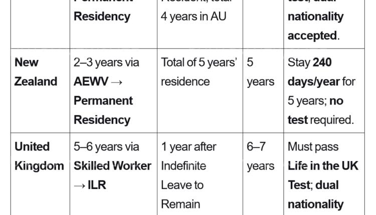 How Long Does It Take to Become A Citizen of the US, UK, Canada, Australia, New Zealand and Germany via the Work Visa Route
