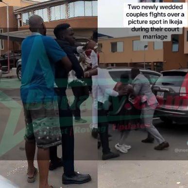 A video showing the moment two men who just got married exchanged blows at a marriage registry in Lagos state over picture spot has made the rounds on social media.
