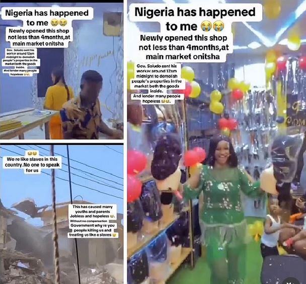 A trader in Onitsha has taken to social media in tears after her newly opened shop was reportedly demolished in the middle of the night at the popular Onitsha Main Market.Read Original/Read Complete.