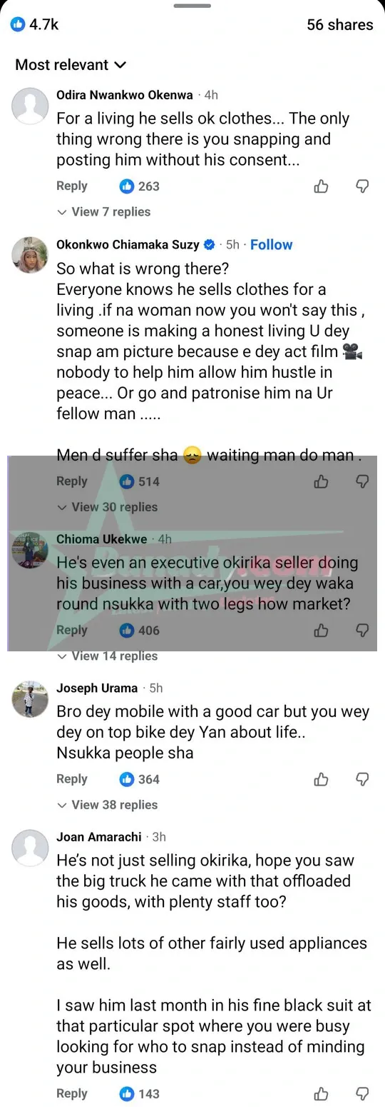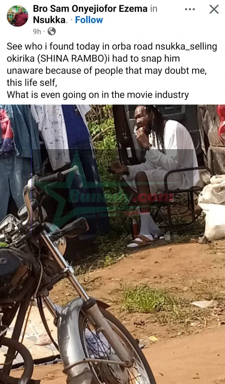 A man has shared a photo of former Nollywood actor Sylvester Madu selling clothes along a bushy road in Nsukka, Enugu State.