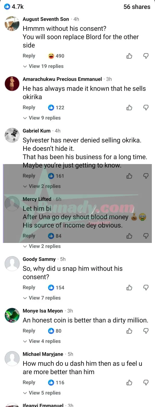 Outrage as man shares photo of former Nollywood actor Sylvester Madu selling clothes and eating on bushy road