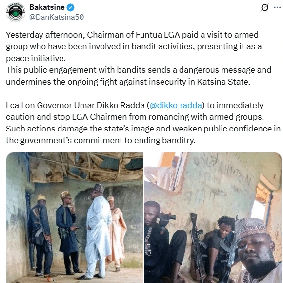 The Chairman of Funtua Local Government Area in Katsina State, Hon. Abdu Goya, has met with armed groups involved in banditry activities, under the guise of a peace initiative.