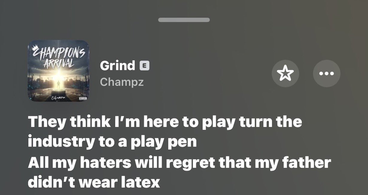 In Grind, he throws playful shade at haters, rapping that they will “regret that my father didn’t wear latex,” a cheeky nod to his father’s legacy.